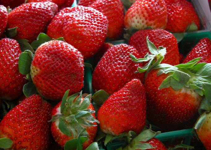 看表面。蒂頭葉片鮮綠、有細(xì)小絨毛、表面光亮、無損傷腐爛的草莓才是好草莓。表面有白色或灰色斑點的可能是生病的草莓。